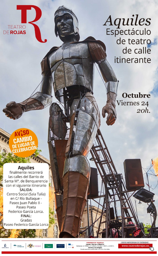 El próximo viernes 24 de octubre se celebrará el espectáculo de calle 'Aquiles' en el Barrio toledano de Santa María de Benquerencia. El evento cambia de ubicación tras anunciarse que se realizaría en el Casco Histórico de la ciudad.