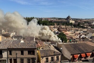 El incendio en una casa de la calle Zarzuela de Toledo provoca su derrumbe, sin daños personales