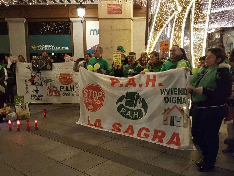 "En unas fechas como estas, donde se engalanan las calles con miles de luces, se apagan las casas. Exigimos medidas eficaces y no simples titulares", concluyó. En un ambiente festivo, los numerosos afectados allí concentrados cantaron villancicos y lanzaron consignas alusivas a los cortes de suministros, y a los rescates a bancos y no a familias.