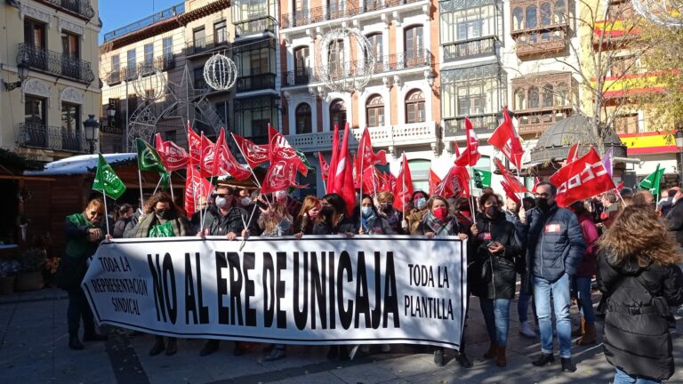 Durante la concentración celebrada en Toledo, Carmen Valle, delegada de UGT, ponía de manifiesto que la principal reivindicación tanto de UGT como del resto de sindicatos es que las salidas de la empresa sean voluntarias y que no haya movilidad forzosa. “La entidad sigue queriendo sobrepasar las líneas rojas que hemos planteado los representantes de los trabajadores y trabajadoras y es que, además de exigir la voluntariedad de las salidas y de la movilidad geográfica, consideramos fundamental la homologación de las condiciones laborales de la plantilla ya que lo que quiere Unicaja Banco es crear una plantilla de primera y otra de segunda”.