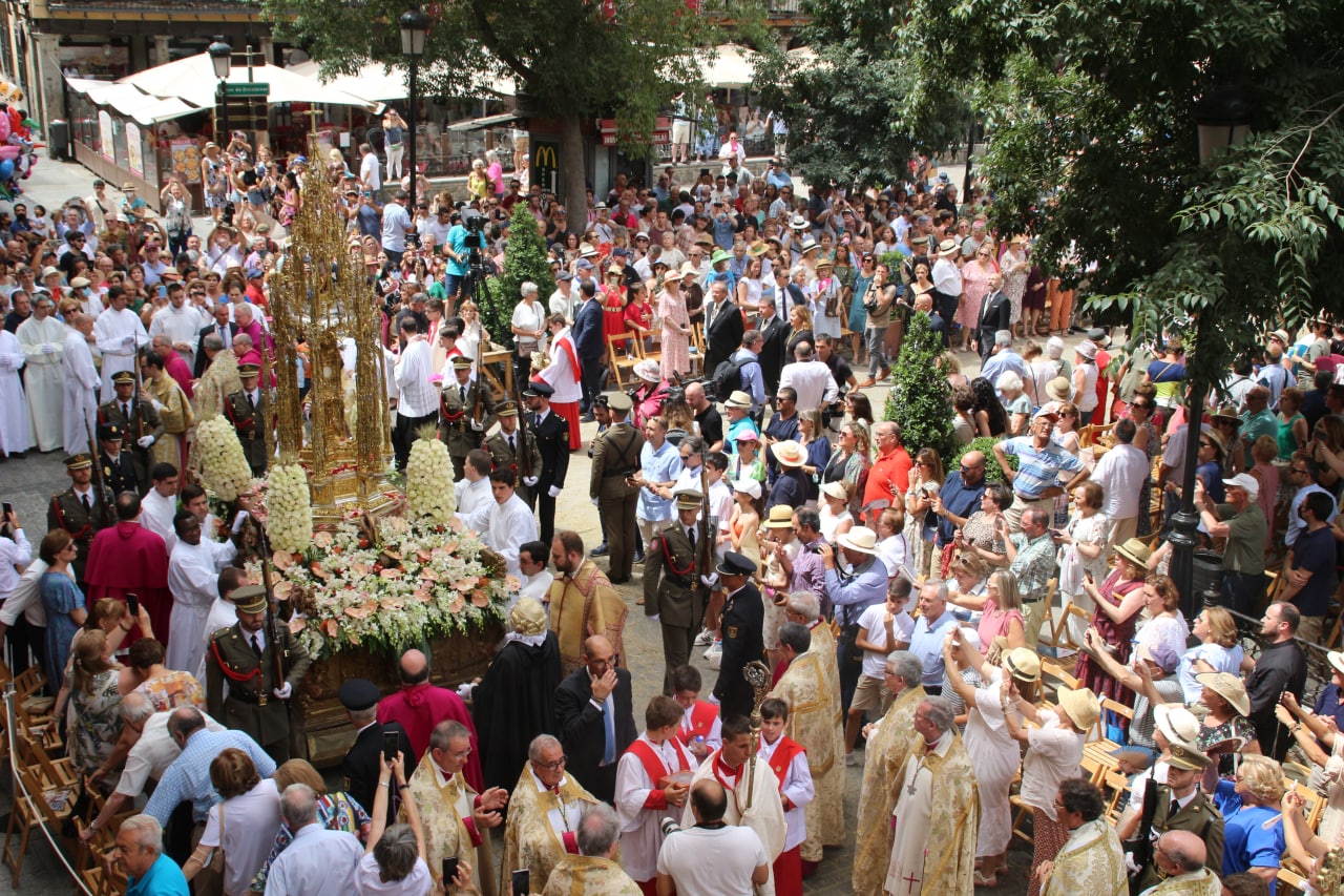 La alcaldesa de Toledo, Milagros Tolón, se ha felicitado de que hoy los toledanos puedan vivir sin restricciones "el Corpus del reencuentro". Un día importante y lleno de sentimientos, ha dicho. Miles de personas han desafiado el calor en las calles toledanas para poder asistir a la celebración del día grande de la ciudad y festivo regional.