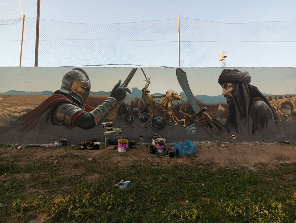 La obra de Consuegra, de 60 metros de largo y 2,7 de altura, resume la historia del municipio toledano desde su pasado romano. Se sitúa en una pared del campo de fútbol que da al río Amarguillo, que se ha desbordado varias veces generando episodios dramáticos.