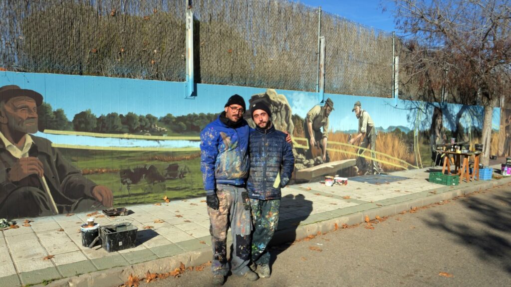 Por su parte, en el mural de Menasalbas, realizado con la misma técnica, está dedicado a antiguos oficios. "Es un pueblo muy trabajador, que no ha podido tener cultura agraria y se ha tenido que reinventar para poder sacar su economía" mediante oficios como "el de pastor de vacas, pues hay muchísimo ganado, o picapedrero".