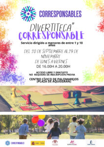 Además, se mantienen los programas y actividades habituales dentro del Plan Corresponsables, como son la ‘Divertiteca’ en el Centro Cívico de Palomarejos, un espacio lúdico de ocio y juegos, abierto de 16:00 a 20:00 horas, dirigido a menores de entre 1 y 10 años de lunes a viernes. El acceso es gratuito y no se requiere de inscripción previa.