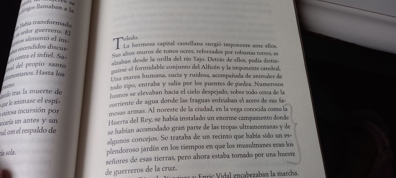 Otra de los grandes protagonistas del libro es la Toledo del siglo XIII. Esa ‘Ciudad de las Tres Culturas’ en la que habitaron cristianos, judíos y musulmanes y cuya convivencia no fue bien entendida por los forasteros, especialmente por los ‘ultramontanos’, mercenarios llegados de Francia o de otros puntos de Europa para participar en la ‘cruzada’ que el papa Inocencio III autorizó a Alfonso VIII de Castilla con el objeto de frenar el avance árabe hacia Europa.