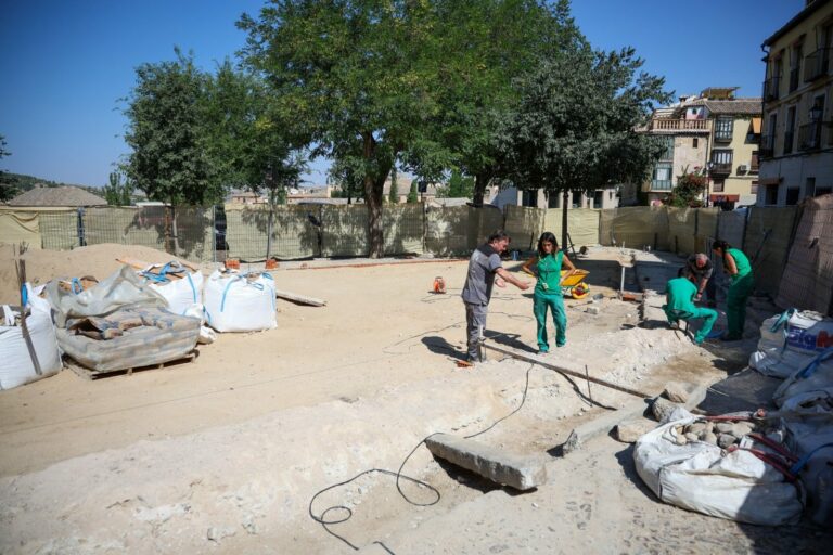 Las doce alumnas y alumnos del nuevo programa de Capacitación Juvenil puesto en marcha este año por el Ayuntamiento de Toledo ya están llevando a cabo la remodelación de la plaza de San Cristóbal, en el Casco Histórico, tras los tres meses de formación previa que han realizado.
