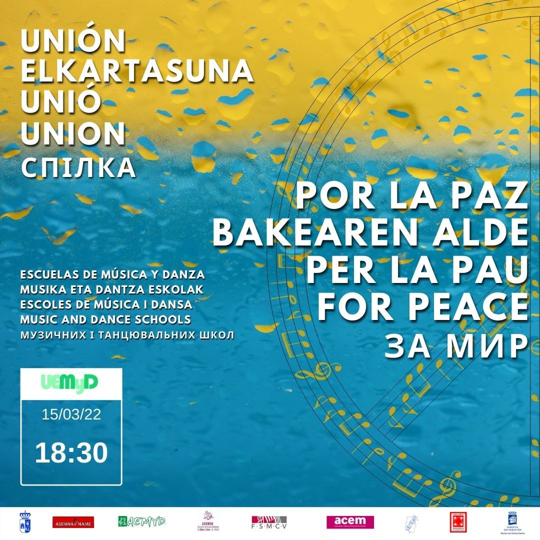 El evento se desarrollará bajo el lema ‘Unión de escuelas de música y danza por la PAZ’ y un manifiesto con el que UEMyD recuerda a "los miles de muertos y millones de refugiados/as que huyen del país, dejando atrás sus vidas, sus recuerdos y, muchos/as de ellos/as, a parte, a sus familias. Son las víctimas inocentes de una lucha de poderes que viola, deliberadamente, los derechos humanos y todo lo que representan. Porque, si bien la discrepancia es legítima, la imposición armada, la destrucción y el homicidio son absolutamente inadmisibles".