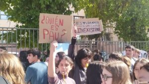 “No sabemos para qué estamos estudiando. Los profesores tampoco saben cómo hacerlo”, explican alumnos y alumnas del Instituto Princesa Galiana, del barrio de Santa Bárbara. “¿Quién es Pau?”, se preguntaba una joven en una pancarta.