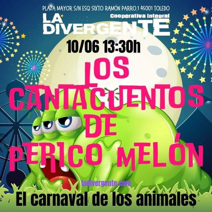 Localización La DiverGente Calle Sixto Ramón Parro, Toledo Web https://ladivergente.com/ Categoría Cuentacuentos Noticias Cultura Fecha sábado 10 Jun 2023 Finalizado! Hora 13:30 Coste Gratuito Cantacuentos 'El carnaval de los animales' Compartir este evento + Añadir Google Calendar Exportación + iCal / Outlook El evento está terminado.