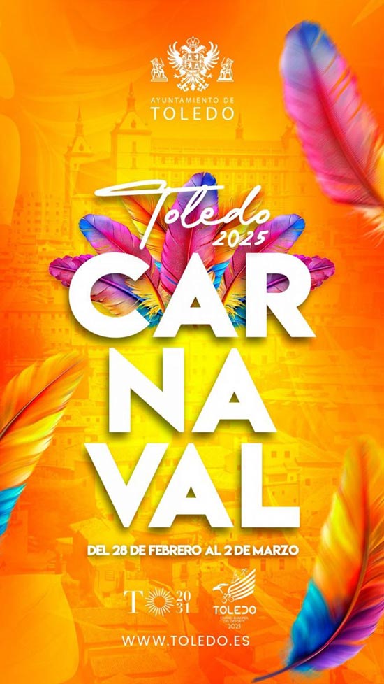 Carnaval Toledo 2024 / Foto: Ayuntamiento Categoría Carnaval Noticias Cultura Fecha viernes 28 Feb 2025 - domingo 02 Mar 2025 Finalizado! Hora 08:00 Coste Gratuito Carnaval de Toledo 2025 Los barrios de Toledo se vuelcan con un carnaval que contará con 2.000 participantes en el gran desfile Kiko Rivera pinchará en un carnaval de Toledo que repartirá 12.000 euros en premios Programación del Carnaval de Toledo 2025 Compartir este evento + Añadir Google Calendar Exportación + iCal / Outlook El evento está terminado.
