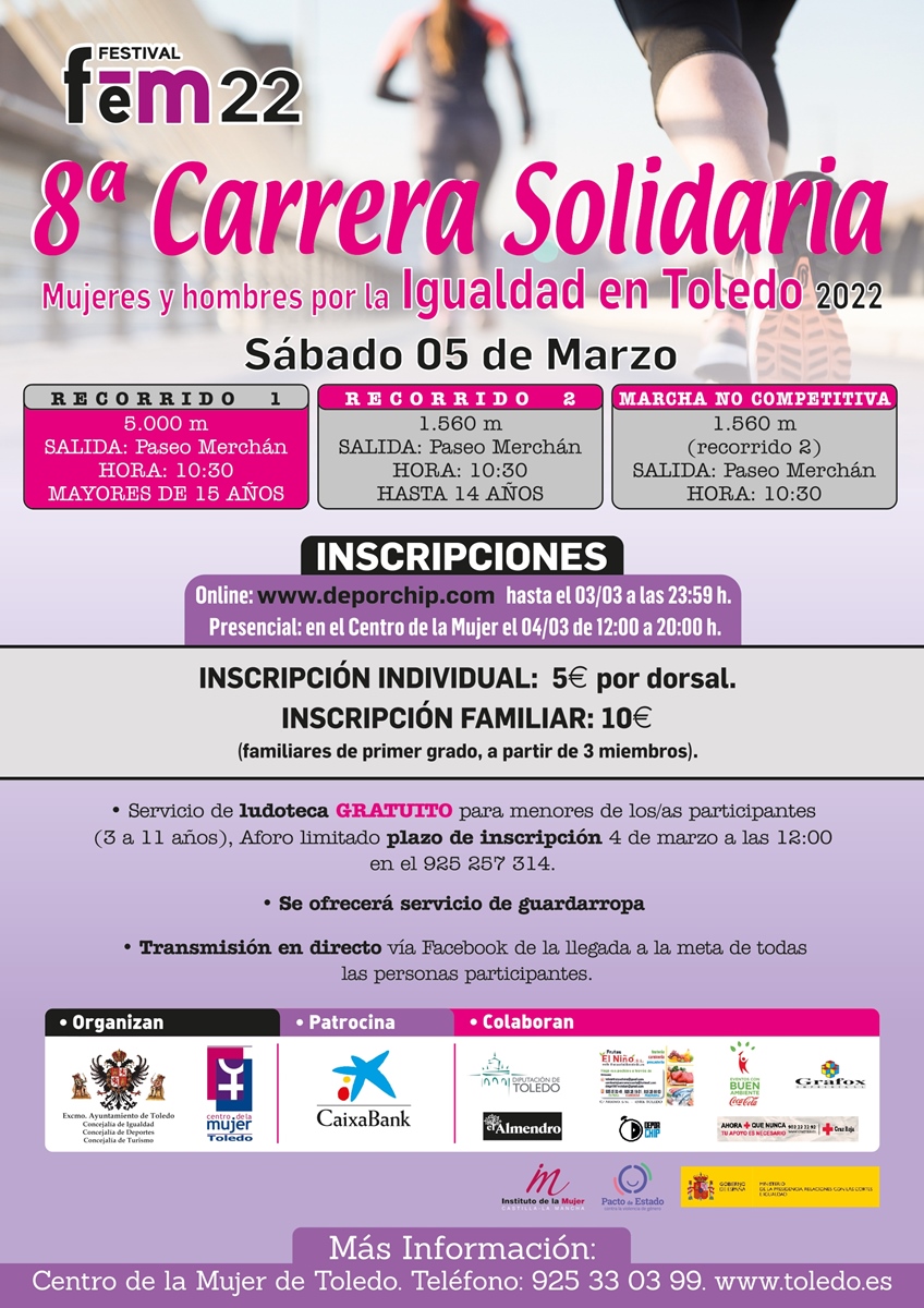 Localización Parque de La Vega Paseo Merchán, 3A, 45003 Toledo, España Categoría Deporte Más Información Leer más Noticias Cultura Fecha sábado 05 Mar 2022 Finalizado! Hora 10:30 Coste 5.00 € Carrera 'Mujeres y hombres por la Igualdad' Inscripciones Compartir este evento + Añadir Google Calendar Exportación + iCal / Outlook El evento está terminado.