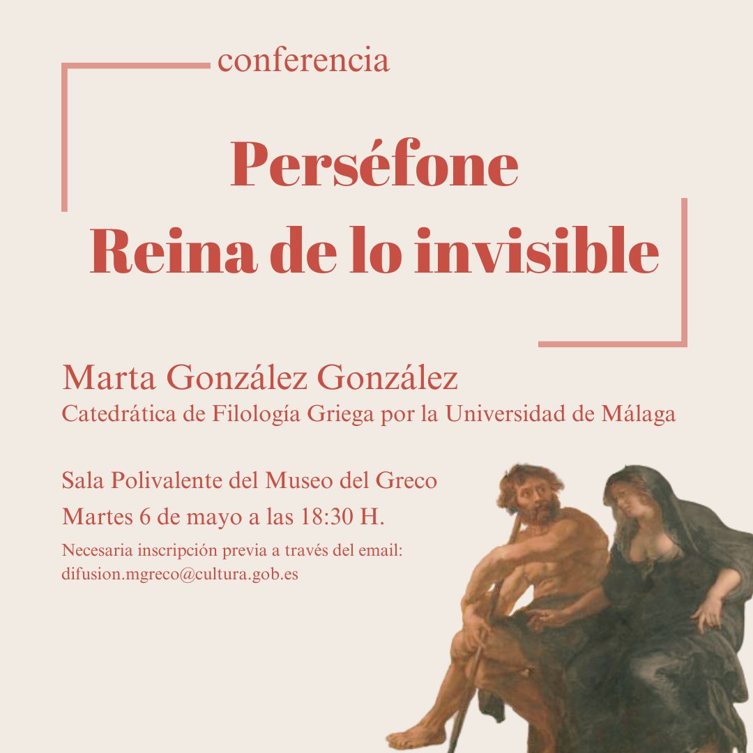 Marta González González, Catedrática de Filología Griega por la Universidad de Málaga, nos descubrirá esta faceta de la reina del Hades menos conocida y explorada por el arte, sin dejar de lado el episodio iconográfico de mayor éxito, su conocido rapto.