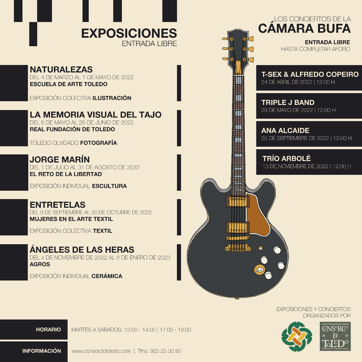 Exposición 'Agros' en la Cámara Bufa / Fotografía: Consorcio de Toledo Localización Cámara Bufa Plaza Concepcion, 1, 45001 Toledo, España Espacio de arte y cultura contemporánea Categoría Exposición Más Información Leer más Noticias Cultura Fecha viernes 04 Nov 2022 - sábado 07 Ene 2023 Finalizado! Hora Cerrando entre las 14 y las 17 horas 12:00 - 19:00 Exposición 'Agros' Compartir este evento + Añadir Google Calendar Exportación + iCal / Outlook El evento está terminado.