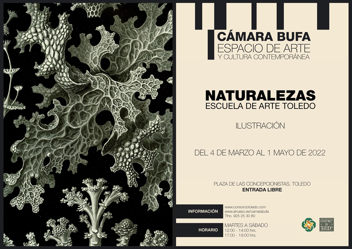 Exposición 'Naturalezas' / Fotografía: Consorcio de Toledo Localización Cámara Bufa Plaza Concepcion, 1, 45001 Toledo, España Espacio de arte y cultura contemporánea Categoría Exposición Más Información Leer más Noticias Cultura Fecha viernes 04 Mar 2022 - sábado 30 Abr 2022 Finalizado! Hora Cerrando entre las 14 y las 17 horas 12:00 - 19:00 Exposición 'Naturalezas' | Alumnado de la Escuela de Arte de Toledo Compartir este evento + Añadir Google Calendar Exportación + iCal / Outlook El evento está terminado.