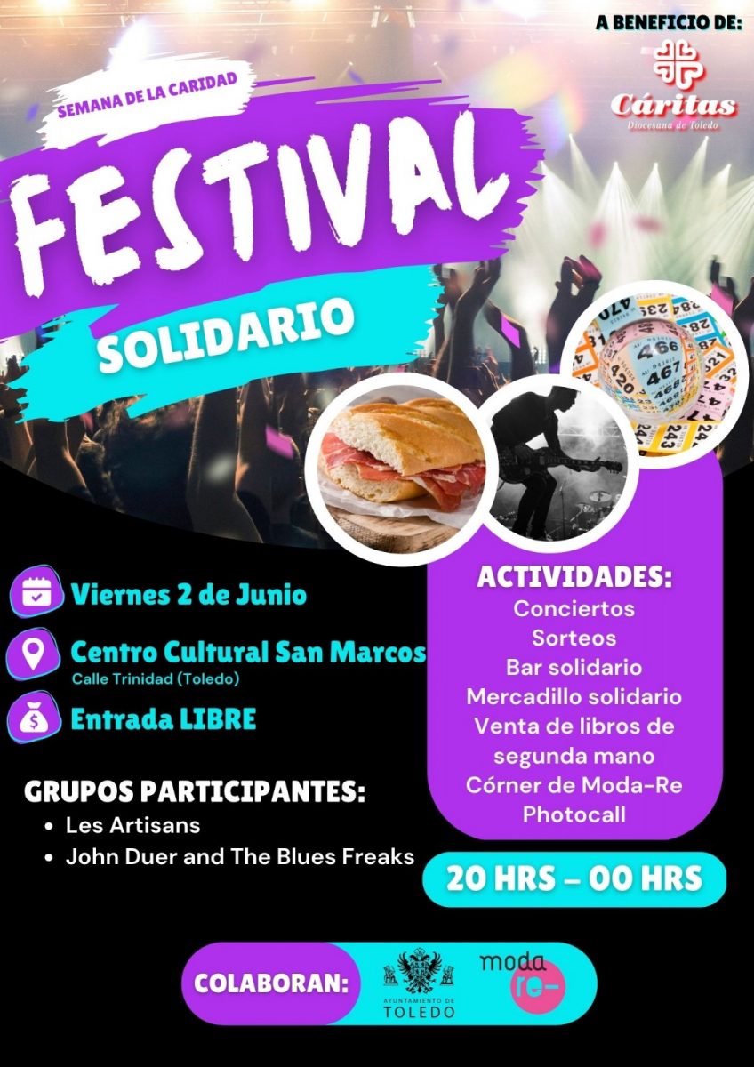 Localización Centro Cultural San Marcos Categoría Festival Noticias Cultura Fecha viernes 02 Jun 2023 Finalizado! Hora 20:00 Coste Gratuito Festival solidario de Cáritas Toledo PROGRAMACIÓN Compartir este evento + Añadir Google Calendar Exportación + iCal / Outlook El evento está terminado.