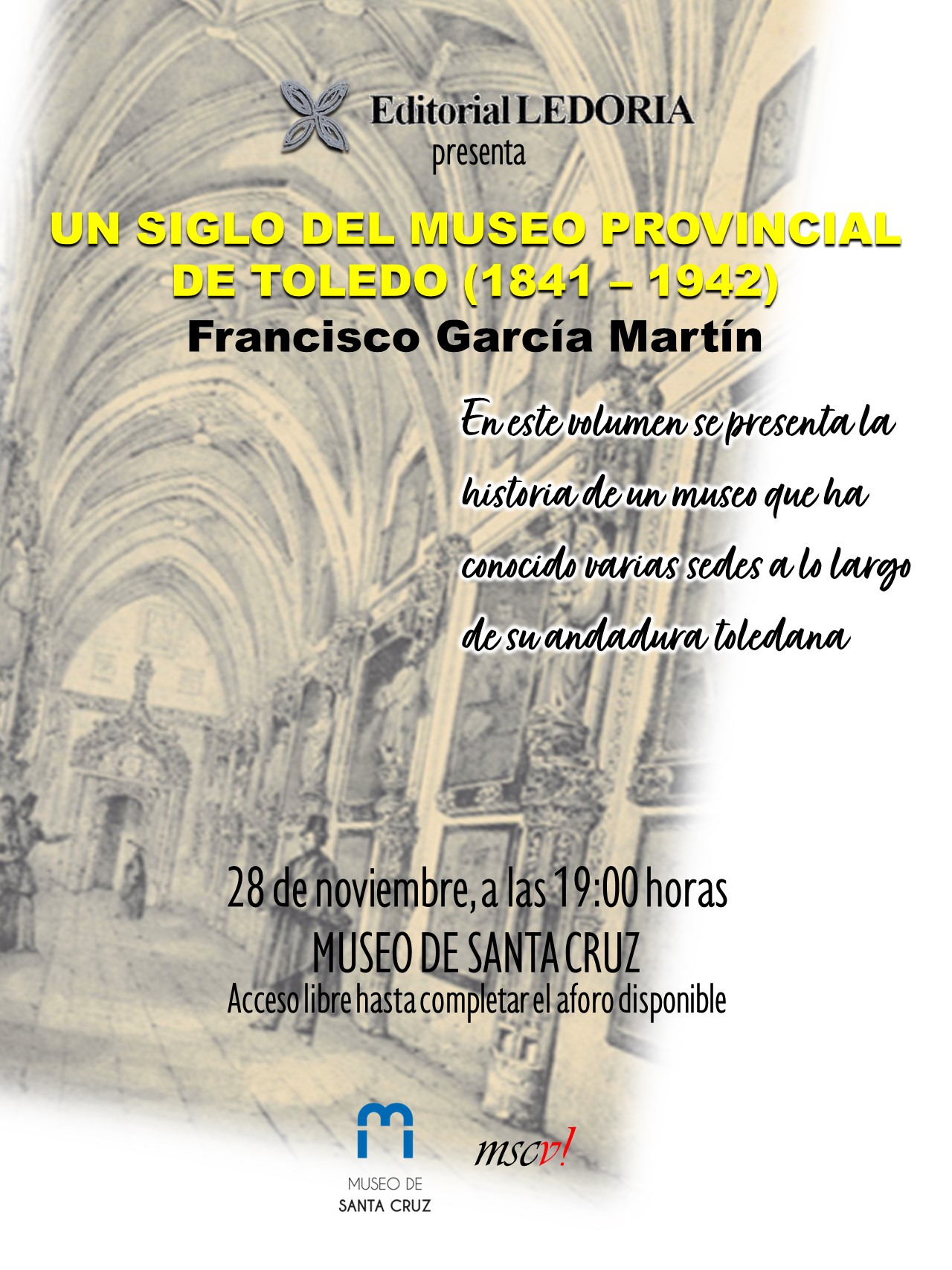 El escritor Francisco García Martín recoge en su libro 'Un siglo del Museo Provincial de Toledo. 1841 – 1942', publicado por Editorial Ledoria, la historia del Museo de Santa Cruz, uno de los museos provinciales más importantes de nuestro país considerando el inmueble que lo acoge y la cantidad y la calidad de sus fondos.