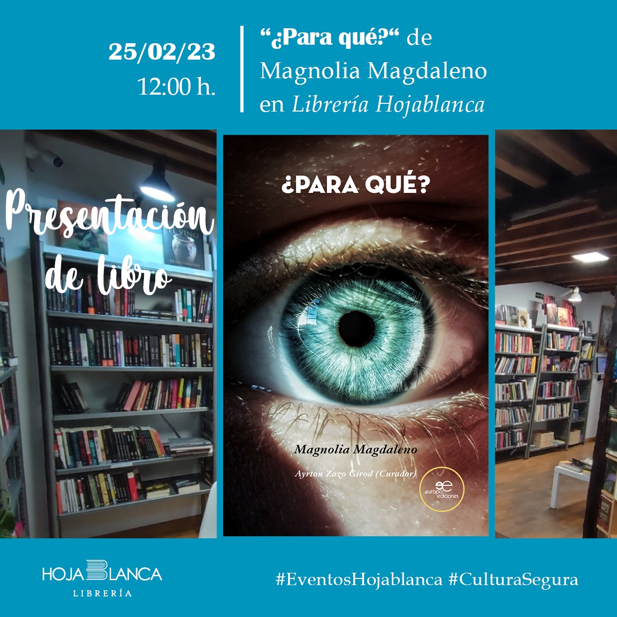 Localización Librería Hojablanca Calle Martín Gamero, 6, 45001 Toledo Web https://hojablanca.es/ Categoría Presentación Noticias Cultura Fecha sábado 25 Feb 2023 Finalizado! Hora 12:00 Coste Gratuito Presentación del libro '¿Para qué?' Compartir este evento + Añadir Google Calendar Exportación + iCal / Outlook El evento está terminado.