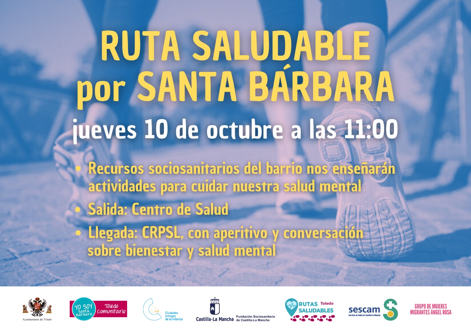 Organizador Ayuntamiento de Toledo Localización Centro de Salud de Santa Bárbara Categoría Ruta Noticias Cultura Fecha jueves 10 Oct 2024 Finalizado! Hora 11:00 Coste Gratuito Ruta saludable por Santa Bárbara Compartir este evento + Añadir Google Calendar Exportación + iCal / Outlook El evento está terminado.