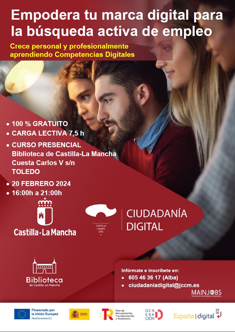 Localización Biblioteca de Castilla-La Mancha Cuesta Carlos V, 4, 45001 Toledo, España Categoría Taller Más Información Leer más Noticias Cultura Fecha martes 20 Feb 2024 Finalizado! Hora 16:00 - 21:00 Coste Gratuito Taller 'Empodera tu marca digital para la búsqueda activa de empleo' Compartir este evento + Añadir Google Calendar Exportación + iCal / Outlook El evento está terminado.