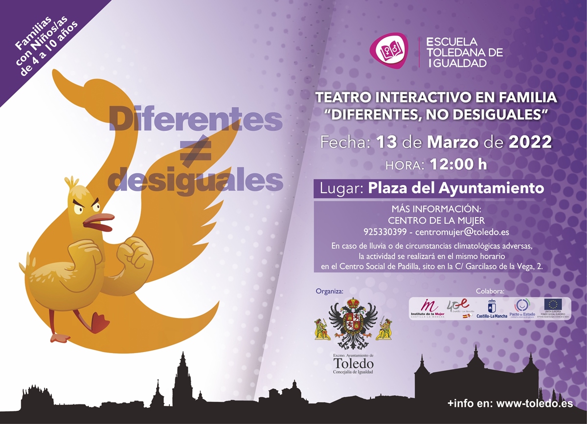 Actuación infantil 'La Vaca Loca' / Fotografía: Ayuntamiento de Toledo Organizador Ayuntamiento de Toledo Localización Plaza del Ayuntamiento Categoría InfantilTeatro Noticias Cultura Fecha domingo 13 Mar 2022 Finalizado! Hora 12:00 Teatro 'Diferentes, no Desiguales' En caso de lluvia, la función se celebrará a la misma hora, en el SALÓN DE ACTOS DEL CENTRO SOCIAL DE PADILLA (calle Garcilaso de la Vega, 2) Compartir este evento + Añadir Google Calendar Exportación + iCal / Outlook El evento está terminado.