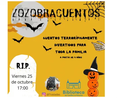 Localización Biblioteca de Castilla-La Mancha Cuesta Carlos V, 4, 45001 Toledo, España Categoría Cuentacuentos Más Información Leer más Noticias Cultura Fecha viernes 25 Oct 2024 Finalizado! Hora 17:00 - 18:00 Coste Gratuito Zozobracuentos Cuentos terroríficamente divertidos para toda la familia. Patricia de Trastadas vuelve con otra divertida sesión de Halloween para toda la familia (recomendado para niños a partir de 4 años) Entrada libre hasta completar aforo. En el Salón de Actos. Compartir este evento + Añadir Google Calendar Exportación + iCal / Outlook El evento está terminado.