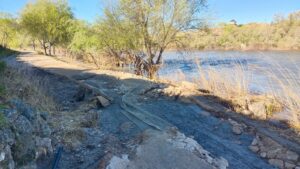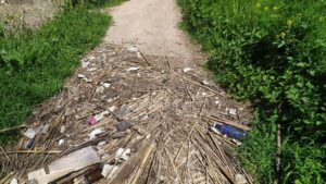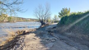 Entre las imágenes que deja la senda ecológica, que ha estado cortada en varios tramos anegados de agua por la crecida del río, impresiona un enorme resto de arbolado que abarca todo el ancho de la misma. Además, hay varias zonas en las que este sendero ligado al río ha sufrido destrozos y ha perdido parte de la tierra que lo compone.