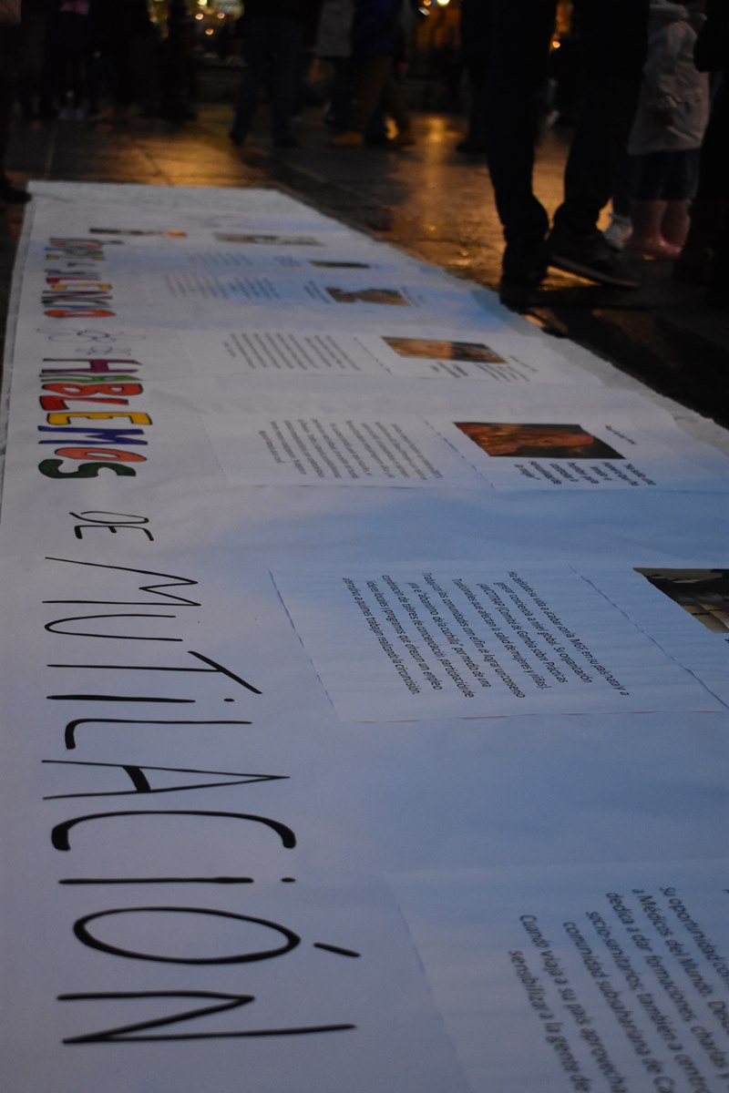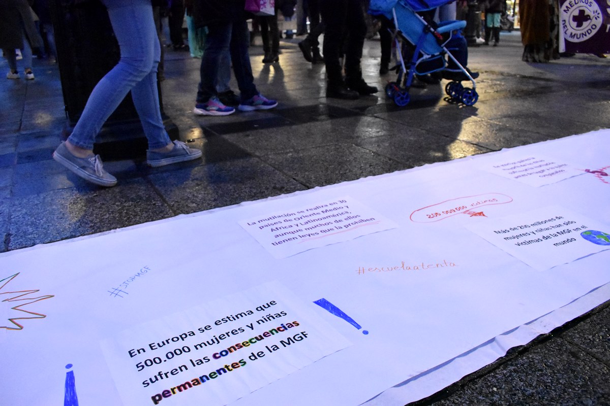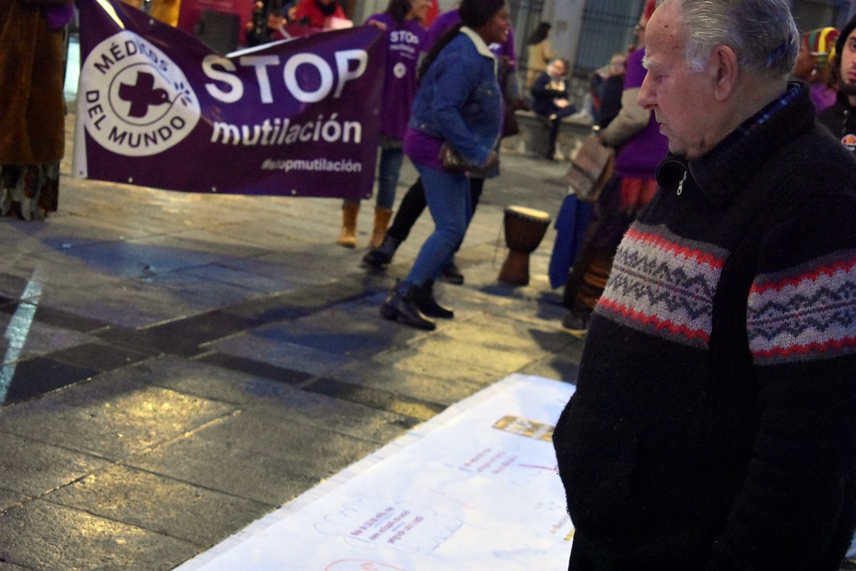 Con la performance de este sábado, enmarcada en el Día Mundial para la erradicación de la Mutilación, Médicos del Mundo quiere que la ciudadanía conozca la envergadura de esta violencia de género.