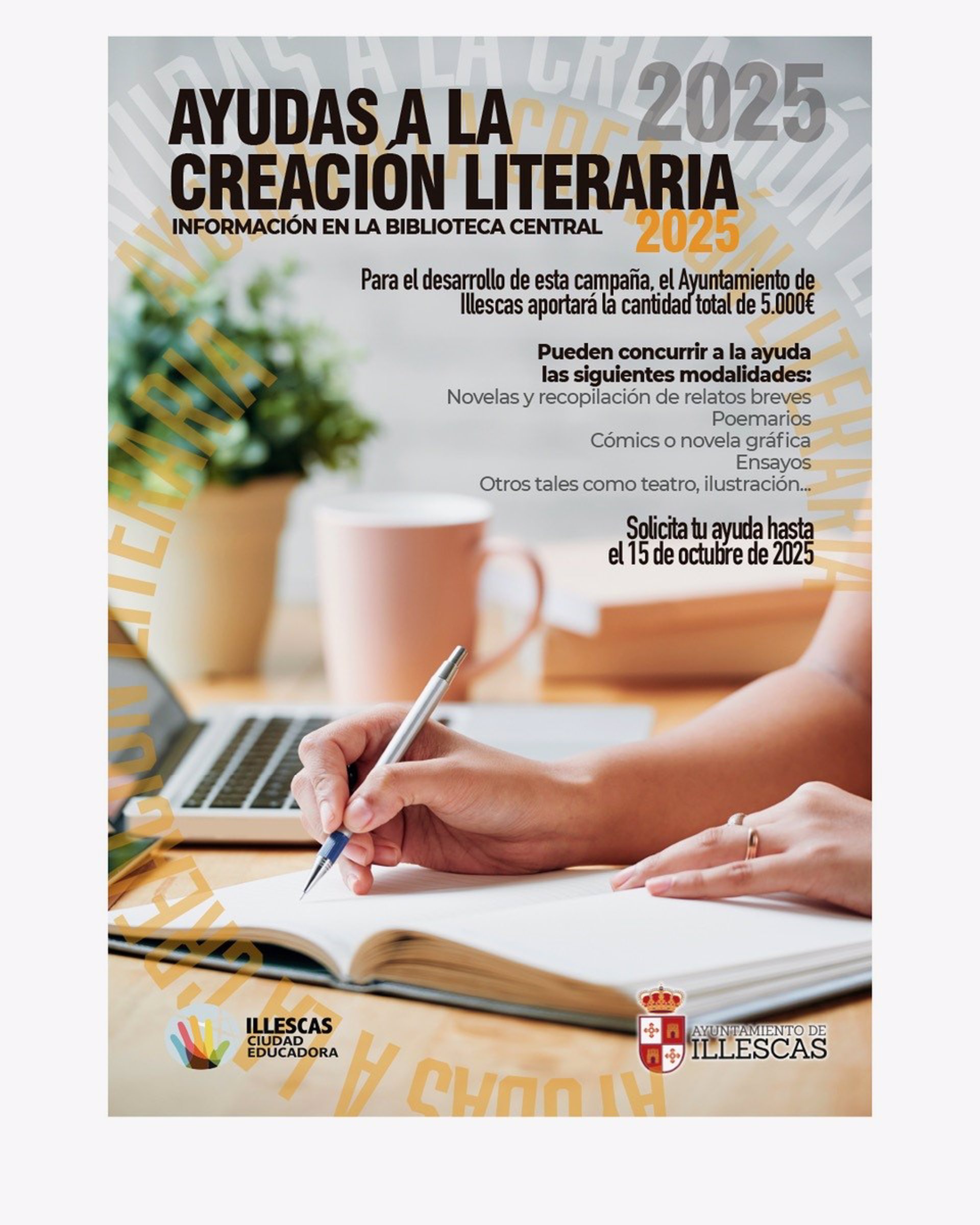 Las solicitudes para optar a estas ayudas, la documentación requerida y la obra literaria, se podrán presentar hasta el 15 de octubre de 2025, bien en las bibliotecas municipales de Illescas o a través del registro electrónico del ayuntamiento.