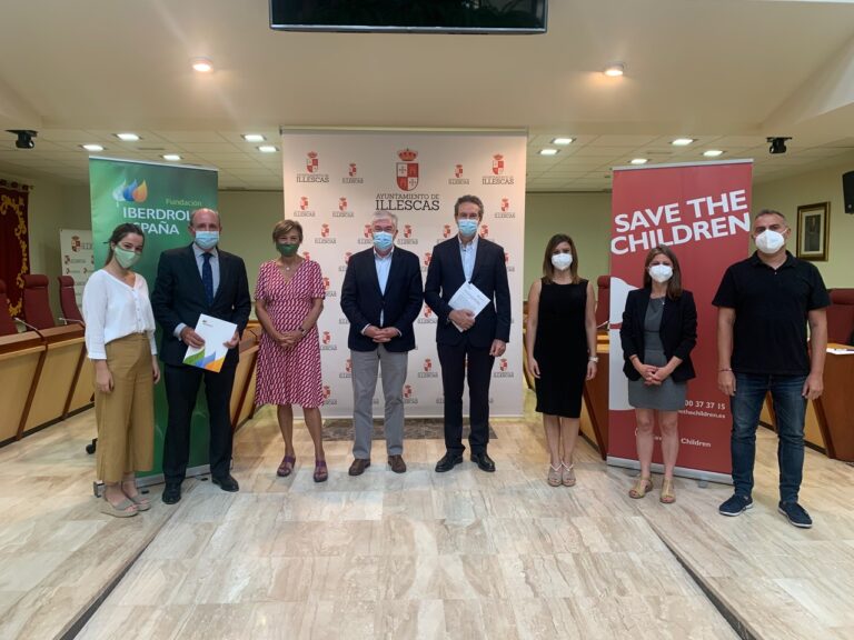 A la firma del convenio han acudido el alcalde de Illescas José Manuel Tofiño; el director de la Fundación Iberdrola España, Ramón Castresana; y el director general de Save the Children, Andrés Conde. Han estado acompañados por la concejala de Formación y Empleo, Sandra Quevedo; y el responsable del CDAFA, Ismael El Mimeh.