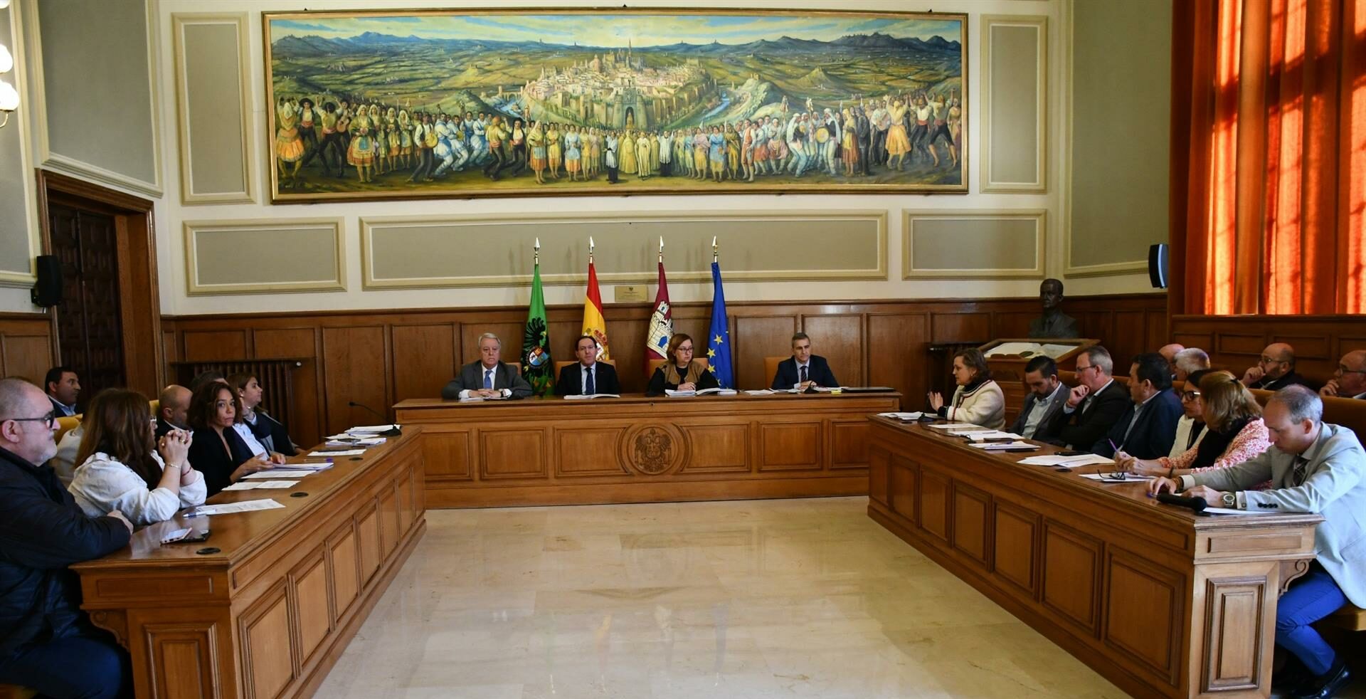 Este óleo de grandes dimensiones, 6,65 metros de ancho y 1,65 metros de alto, preside el Salón de plenos de la institución que ha organizado este viernes, 14 de junio, diferentes actividades gratuitas en su honor. Y es que, 'Toledo símbolo' cumple cuatro décadas.