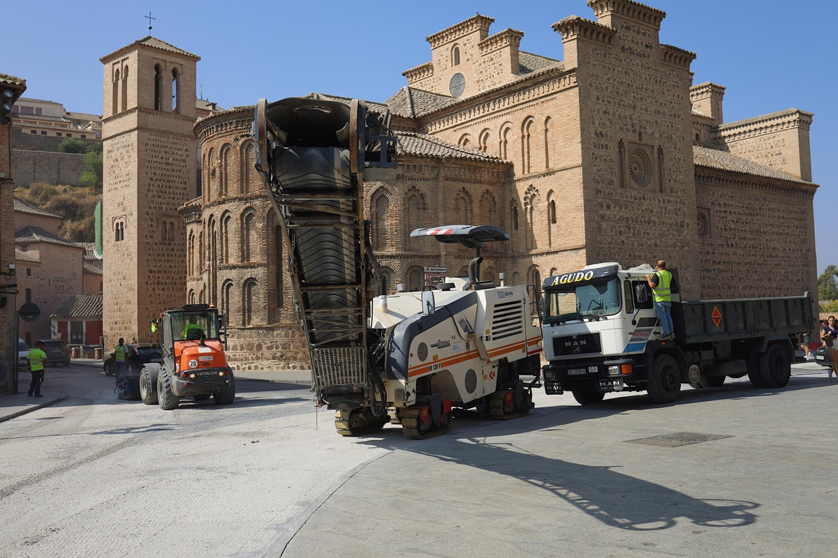 El Ayuntamiento de Toledo ha comenzado las obras en el entorno de la Puerta de Bisagra con los trabajos de fresado que hasta ahora no ha afectado al tráfico pero que a partir del miércoles 28 de agosto se verá afectado al iniciarse la fase de asfaltado que obliga a limitar la circulación en el eje Bisagra- Zocodover.