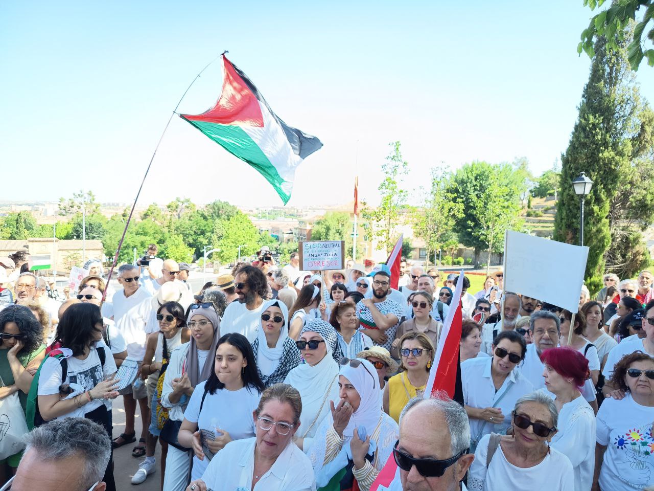 Cientos de personas se unieron a la Marcha por Gaza organizada en Toledo, que confluyó alrededor del olivo plantado en 2014 con la presencia del embajador de Palestina Musa Amer Odeh. Cientos de personas que desafiaron el calor vestido de blanco pidiendo por la paz, el fin del "holocausto colectivo" en Palestina. Un llamamiento desde la ciudad de las tres culturas, simbólica del entendimiento, con el apoyo de decenas de colectivos sociales de la ciudad que se unieron para exigir el fin de la violencia.