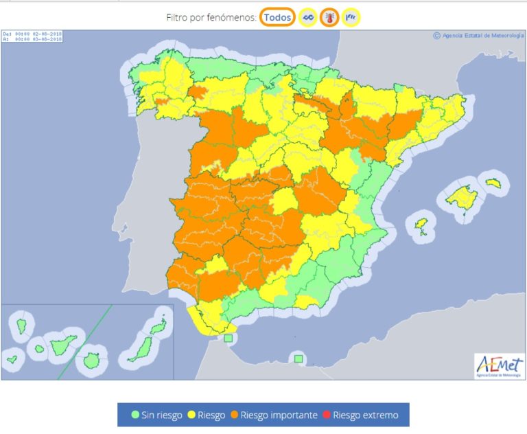 Así, la AEMET califica de 'riesgo' (amarillo) las temperaturas para este miércoles en la provincia de Toledo y de 'riesgo importante' (naranja) meteorológico a partir de este jueves. Además en el Valle del Tajo, también se prevé alcanzar el riesgo importante meteorológico este jueves en los Montes de Toledo y en la Sierra de San Vicente.