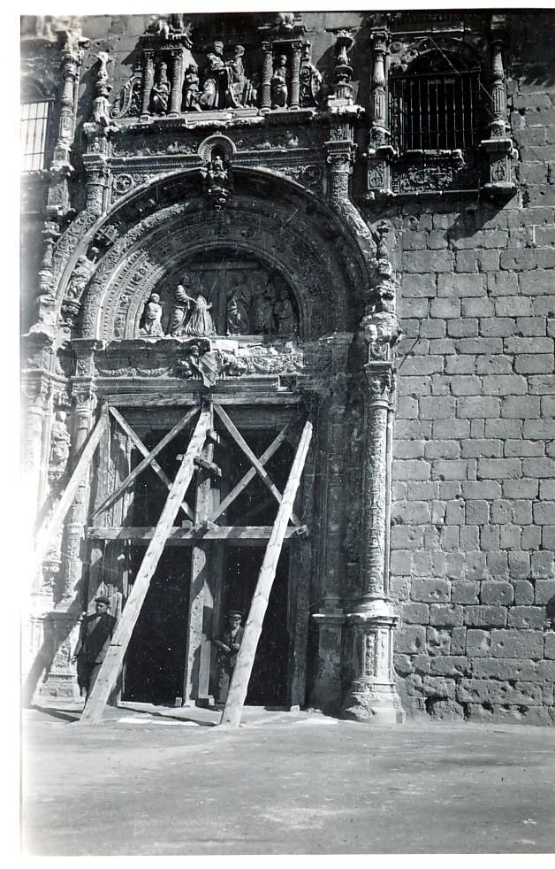 IMAGEN EDITORIAL - PORTADA DEL EDIFICIO QUE ALBERGA HOY EL MUSEO DE SANTA CRUZ, APUNTALADA DURANTE 1936 / COLECCIÓN PERSONAL DE EDUARDO SÁNCHEZ BUTRAGUEÑO
