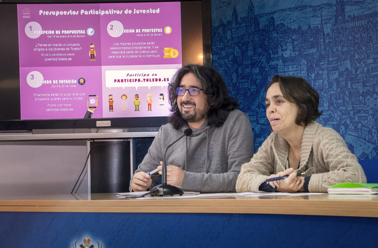 El concejal de Juventud, Diego Mejías, y la concejala de Participación y Transparencia, Helena Galán, han presentado este lunes la iniciativa de presupuestos participativos de Juventud, una propuesta que brinda a los toledanos la oportunidad de elaborar los programas de actividades juveniles que se desarrollarán en los próximo meses, como son 'Entrelunas' y 'Veranito 2018'.