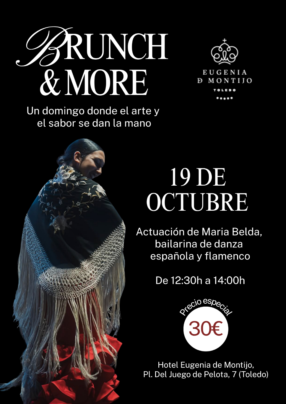 El que fuera el palacio de la emperatriz francesa de origen granadino se convierte en escenario de música, danza, teatro y magia un domingo al mes. El hotel Eugenia de Montijo de Toledo presenta 'Brunch & More', una comida a media mañana que estará amenizada por diferentes espectáculos en directo