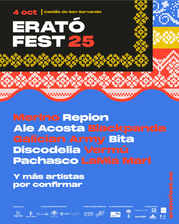 Erató Fest regresa a Toledo del 2 al 4 de octubre de 2025, alcanzando la 8ª edición, para la que ya cuenta con varias bandas y artistas confirmados cuyos géneros musicales van del folclore a la electrónica, pasando por el indie o el pop.