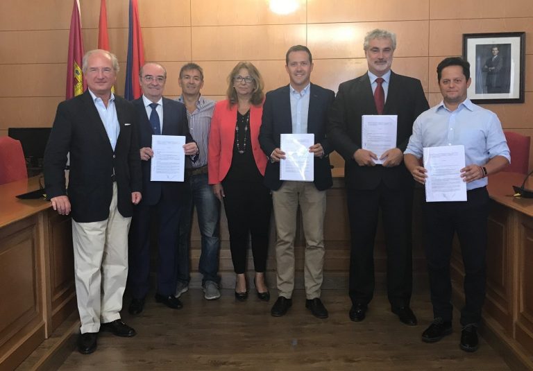 El Ayuntamiento de Seseña ha formalizado hoy el convenio para el desarrollo y la gestión del suelo de 'Parquijote', que supondrá la creación de 2,5 millones de metros cuadrados de suelo industrial en el municipio. Entre los firmantes se encontraban representantes de Carreras Grupo Logístico s.a., Urbanizadora Constructora Nuevo Madrid S.A. e Iberdrola Inmobiliaria S.A., propietarios mayoritarios del suelo, junto con el Alcalde de Seseña, Carlos Velázquez, la concejal de Urbanismo, Rosa Laray y el concejal de Desarrollo Económico, Fernando Ortega.