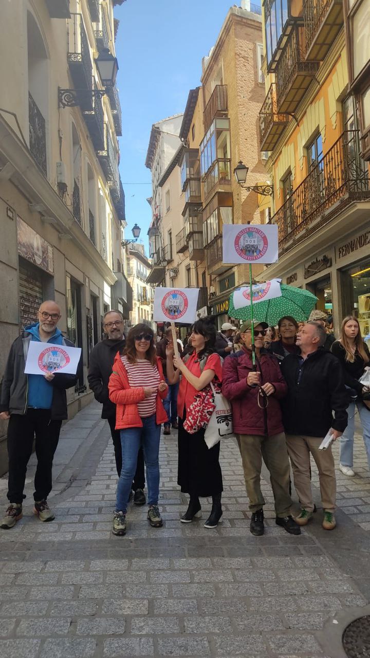 Una docena de vecinos y vecinas del Casco Histórico de Toledo han realizado una protesta espontánea por la situación de la vivienda con un recorrido por las calles más turísticas de la ciudad. Francisco García, miembro de la plataforma Territorio Vecinal, explica que esta iniciativa ha surgido al ver que Toledo no había convocado una manifestación para secundar las que se están haciendo hoy en todo el país.