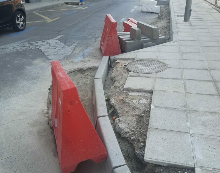 En concreto, en la calle Panamá, en su conexión con la avenida de Espaderos y Colombia, los operarios habían dejado el espacio entre los tramos de aparcamiento terminando en pico, un diseño que presentaba un riesgo evidente de rozaduras para vehículos y posibles daños en los neumáticos.