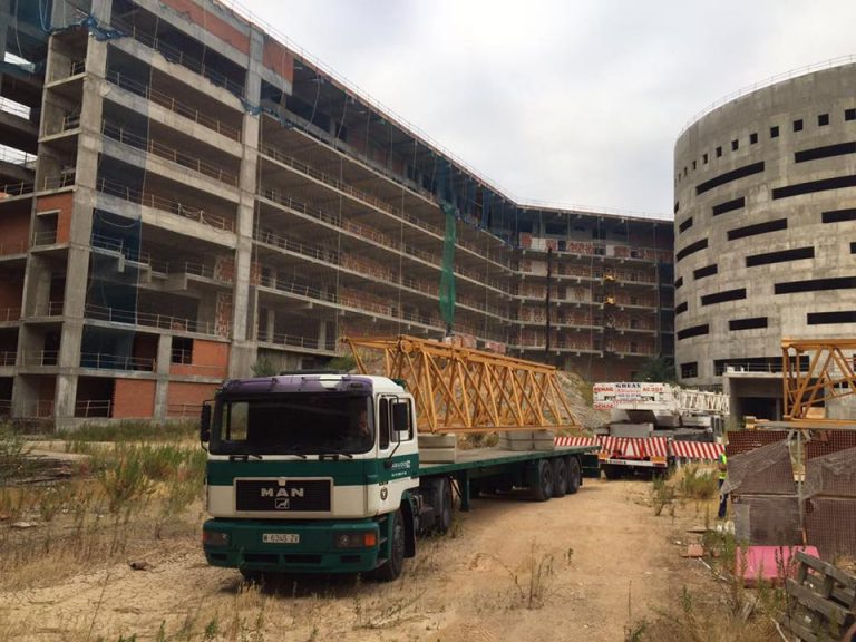 A primera hora de esta mañana las grúas han vuelto a las obras del nuevo Hospital de Toledo para reanudar el grueso de los trabajos de edificación de la infraestructura sanitaria. Los operarios llegaban con las gigantescas estructuras para hacerlas entrar por la zona más cercana al centro comercial 'Luz del Tajo' en un 'gesto' que se venía reclamando desde distinto sectores políticos y sociales como arranque oficial de los trabajos de construcción del centro sanitario.