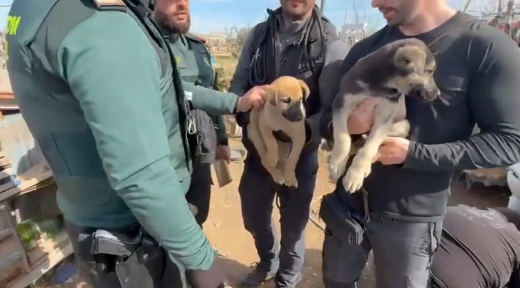 El dispositivo conjunto del puesto de la Guardia Civil y la policía local, con el apoyo de las protectoras de animales, que han acudido para hacerse cargo de todos los animales, ha dado su fruto con la incautación de 17 perros, tres machos adultos, dos hembras adultas, cinco cachorros de dos meses y siete lactantes, entre los cuales muchos presentaban diferentes lesiones o signos del maltrato sufrido, también se han incautado tres gallinas.