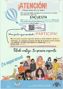 El Ayuntamiento de Toledo, a través de la Concejalía de Asuntos Sociales, pone en marcha un proceso participativo para conocer las opiniones y necesidades de la infancia y la adolescencia del municipio a través de una metodología basada en talleres y encuestas, grupos focales y espacios de participación infantil y adolescente. El objetivo es la elaboración del III Plan Local de Infancia y Adolescencia 2025-2029.
