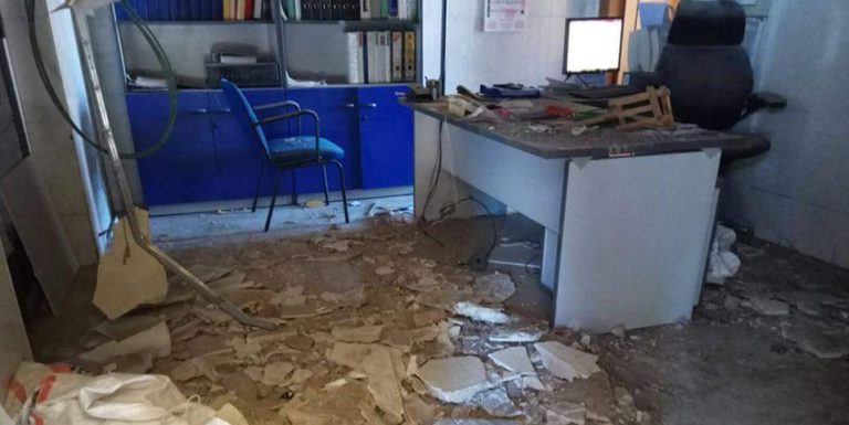 Varios metros cuadrados del falso techo de la estación de ferrocarril de Torrijos (se han hundido este mediodía, afortunadamente sin causar daños personales graves. El trabajador encargado del factor de la estación acababa de levantarse de su silla, sobre la que cayeron buena parte de los cascotes, justo antes de desplomarse el techo. Aun así, resultó golpeado por fragmentos de escayola en el hombro y en la cabeza, donde se le produjo un pequeño cortes.