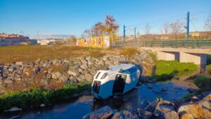 Un turismo robado en un taller del Polígono cae al arroyo de la Rosa tras una persecución policial 04/12/2024 | Fidel Manjavacas