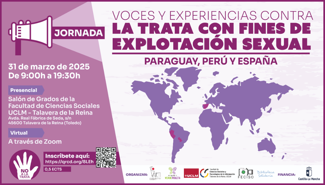 El evento, que está organizado por AIETI, la Asociación Verde Violeta, UCLM, FECISO y Biblioteca Solidaria y financiado por la Consejería de Bienestar Social de la JCCM, también incluye una mesa redonda en la que se dará voz a supervivientes en la lucha para erradicar la trata y la explotación sexual, y otra sesión de experiencias y buenas prácticas para la intervención, abordaje y sensibilización donde participarán entidades como CHS de Perú, Luna Nueva de Paraguay y Accem de España. La jornada concluirá con la proyección y debate del cortometraje documental de la cineasta toledana.