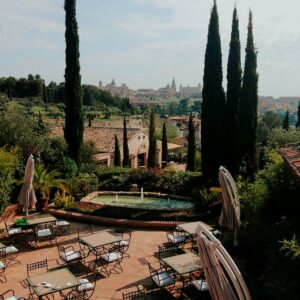 Este hotel de tres estrellas ubicado en el inicio de la zona de los cigarrales en Toledo, es también es una opción interesante. Hasta su terraza con vistas al río y a Toledo llega el rumor del agua. Además, se puede llegar andando en un agradable paseo desde el casco histórico, atravesando el puente de San Martín. Lo ideal para una copa de vino al fresco.