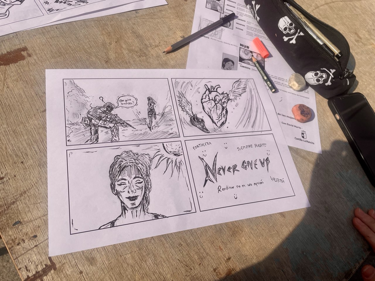 "Estamos trabajando el cómic social desde la realidad de las mujeres refugiadas de Palestina, utilizando el cómic 'Gaza Amal 2', de Susana Martín, que ha sido recientemente reeditado por UNRWA, continuando la historia de mujeres reales en la Franja de Gaza tras la ofensiva israelí de 2023", ha explicado la técnica de UNRWA Castilla-La Mancha, Ana Sánchez.