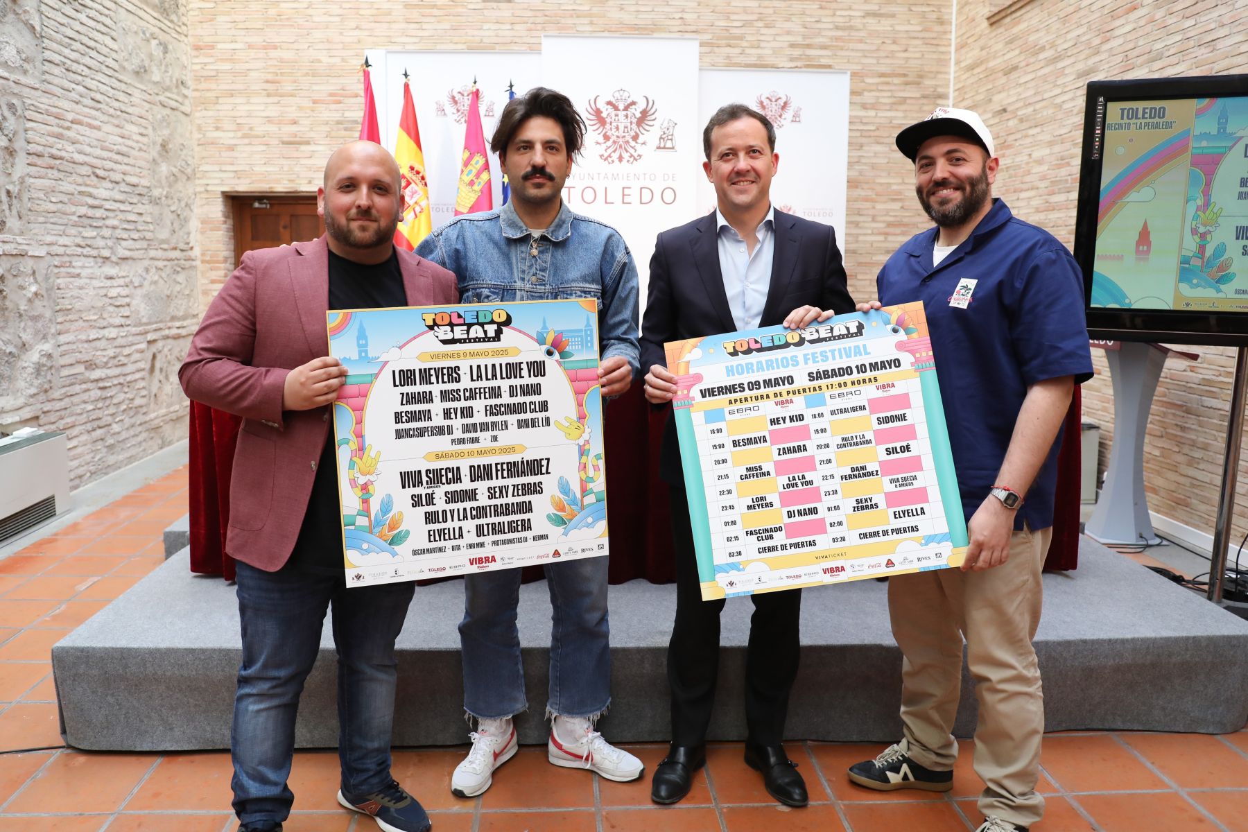 "Estamos muy cómodos sin aglomeraciones , dando un buen servicio, rápido. La meta del Toledo Beat no es tener 60.000 personas. Queremos ser un festival de calidad", ha aseverado Víctor del Río en la presentación que ha hecho de esta edición junto al alcalde de Toledo, Carlos Velázquez; Gabi Montes, cantante de Sexy Zebras, y Roberto Amor, guitarrista y voz de La La Love You.