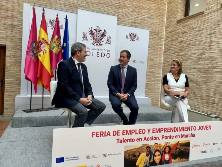 El alcalde, Carlos Velázquez, que ha presentado el evento junto a la presidenta de la Cámara de Comercio, Mari Ángeles Martínez, y el secretario general de la Federación Empresarial Toledana (Fedeto), Manuel Madruga, ha incidido en las oportunidades laborales de los jóvenes en la provincia y el deseo de que puedan acceder a una vivienda.